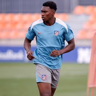 El delantero hispano-nigeriano Samu Omorodion en un entrenamiento con el Atlético de Madrid