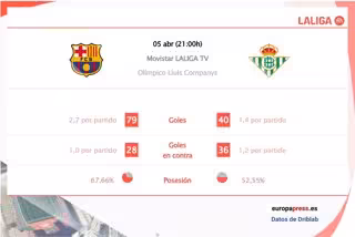 Estadísticas previa Barcelona vs Real Betis. - EPDATA