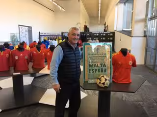 Archivo - Poli Rincón con el balón del España-Malta en el Museo del Deporte - MUSEO DEL DEPORTE - Archivo