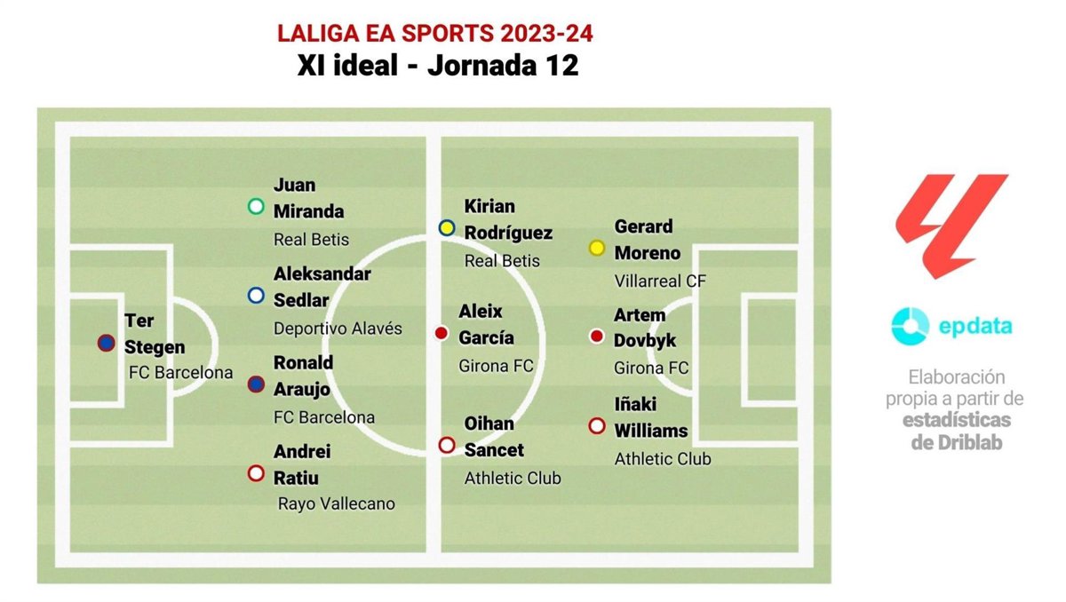 Once ideal de la jornada 12 de LaLiga EA Sports. - EPDATA