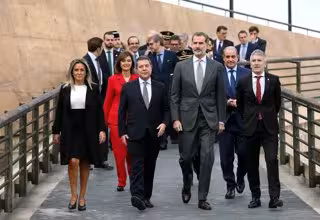 A su llegada al Palacio de Congresos de Toledo sobre las 11.00 horas, el Rey ha sido recibido por el presidente de Castilla-La Mancha, Emiliano García-Page; el ministro de Interior, Fernando Grande-Marlaska; la secretaria de Estado de Seguridad, Ana Botella; el director general de la Policía Nacional, Francisco Pardo; el director operativo adjunto de la Policía Nacional, Ángel González; y la alcaldesa de Toledo, Milagros Tolón.