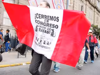 Archivo - Pancarta contra el Congreso en una manifestación en julio en Lima