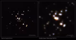 Comparación de la imagen de la estrella más masiva conocida con Gemini Sur y con Hubble (derecha) - INTERNATIONAL GEMINI OBSERVATORY/NOIRLAB/NSF/AURA