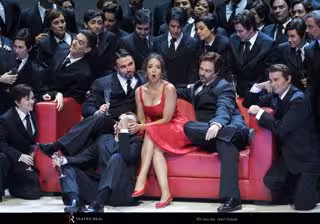 'La Traviata' regresa al Real bajo la dirección escénica de Willy Decker, y con la producción de la Ópera Nacional holandesa que "arrasó" en 2005 en el Festival de Salzburgo. Verdi, que sigue la estructura de la novela 'La dama de las camelias' de Alejandro Dumas hijo, inicia su ópera con el tema de la agonía de Violetta.