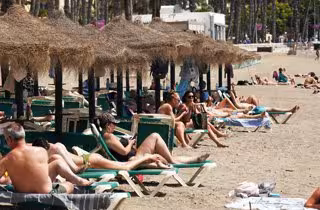 Archivo - Imágenes de bañistas en La Malagueta. A 25 de abril de 2025 en Málaga, Andalucía (España). Numerosos malagueños y visitantes se dan cita este viernes en la playa de La Malagueta, aprovechando las altas temperaturas y el ambiente soleado que marc - Álex Zea - Europa Press - Archivo